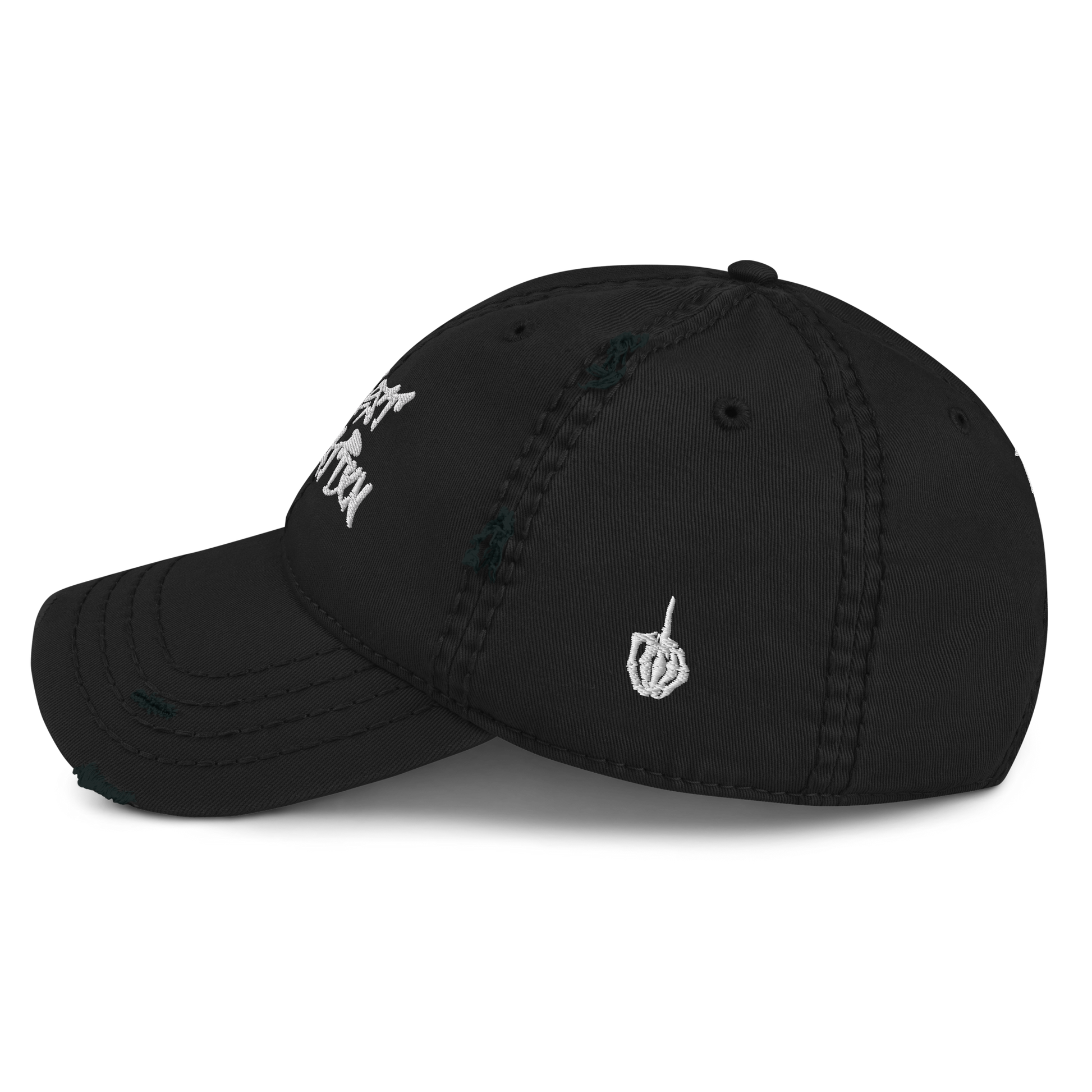 Expand your headwear collection with this fashionable dad hat. With a slightly distressed brim and crown fabric, it’ll add just the right amount of edge to your look. For a quick and easy outfit pair it with slacks, your favorite jeans, and a sports tee.