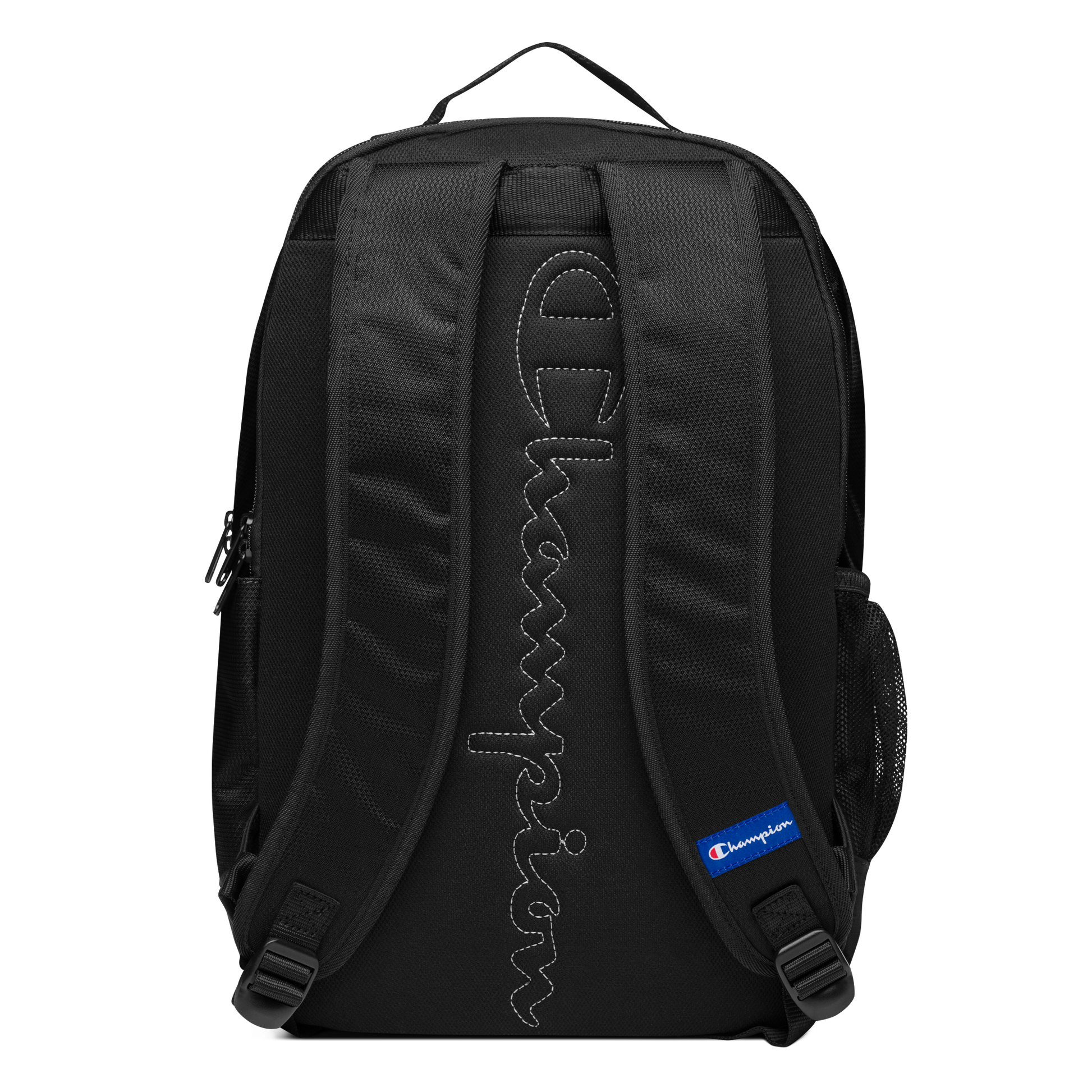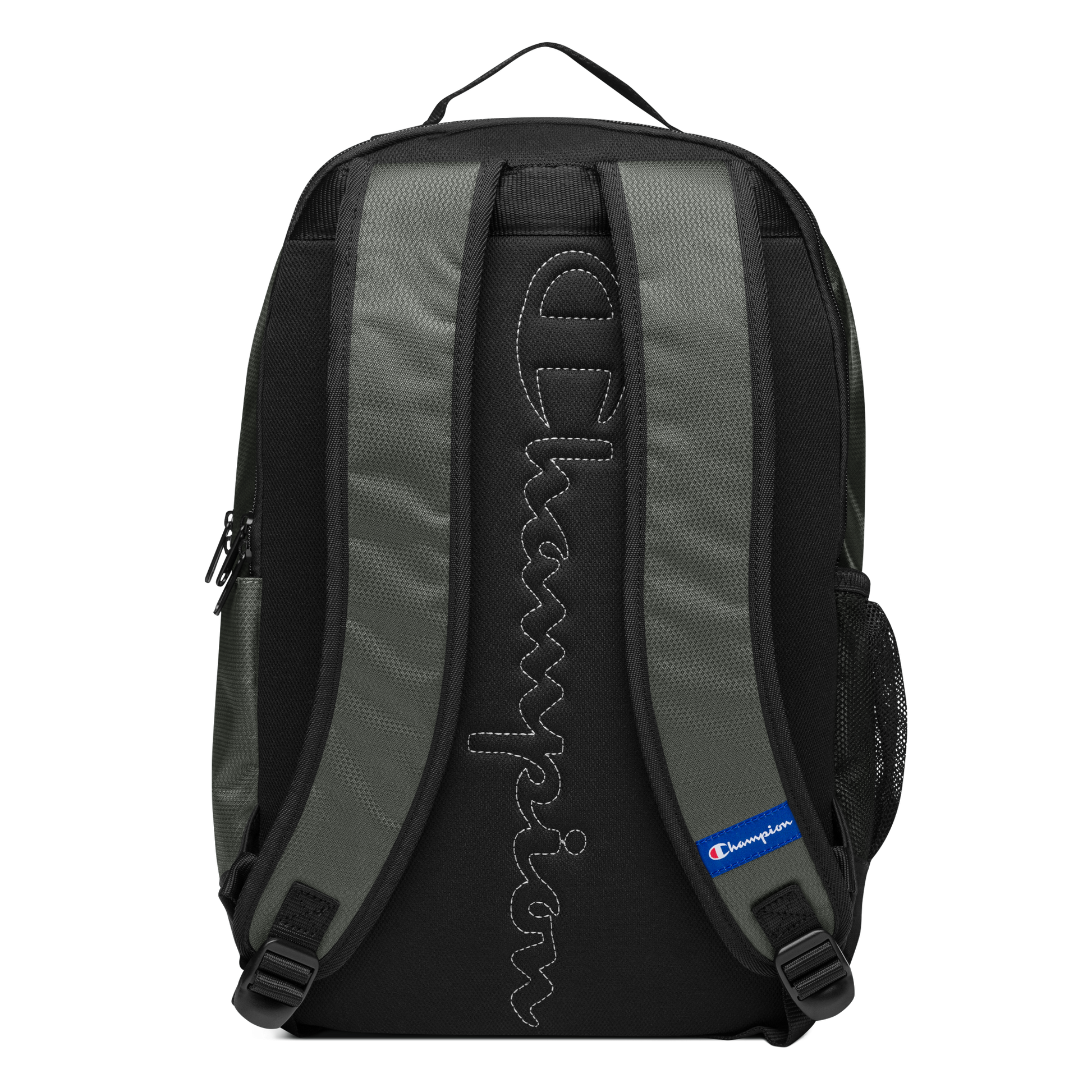 Whether you're navigating city streets or hiking trails, the Champion Backpack combines practicality with Champion's signature style, ensuring you stay organized and effortlessly on trend wherever your journey takes you. • 100% polyester • Dimensions: 18″ × 11.5″ × 6.5″ (45.7 × 29.2 × 16.5 cm) • Front zip pocket with printed Champion brand logo, containing an organizational compartment • Side water bottle pocket • Top carry handle • Top zipper with 2 sliders and zipper pullers • Back and bottom panels • Soft, padded mesh back with Champion brand logo • Padded ergonomic polyester bag straps with plastic strap regulators and Champion brand label on the left strap • Blank product sourced from Cambodia